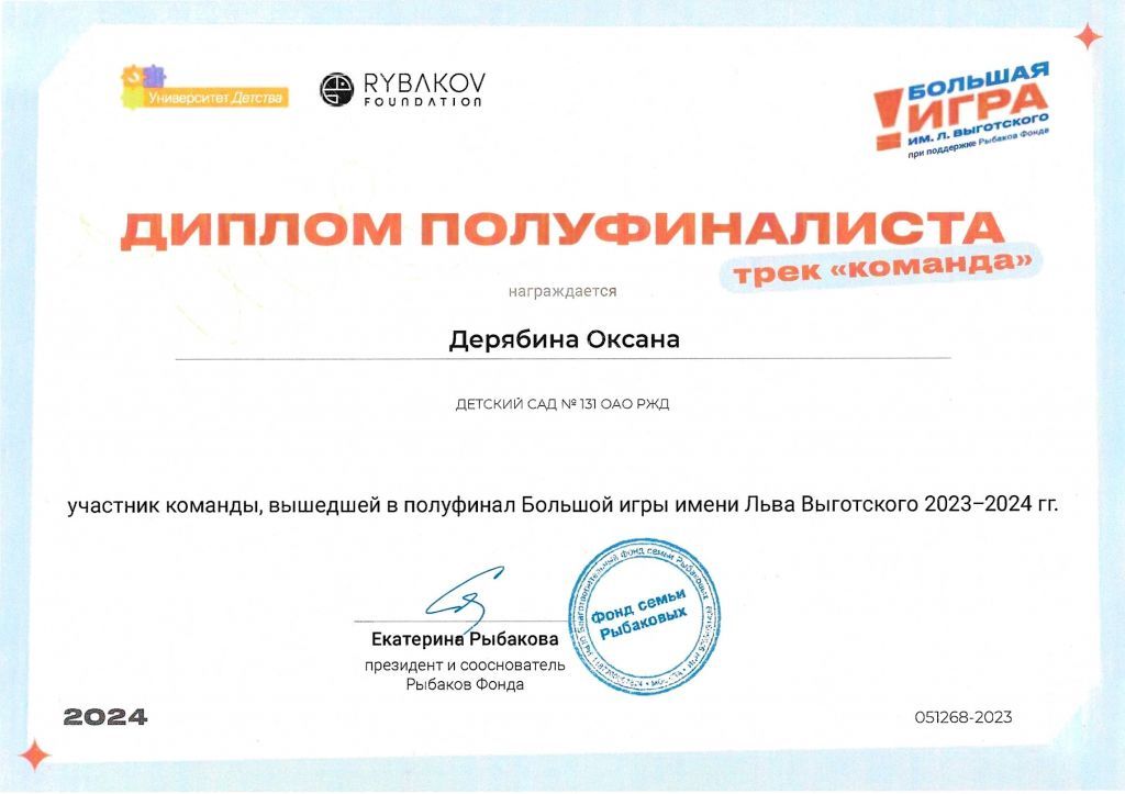 Дерябина Оксана Александровна